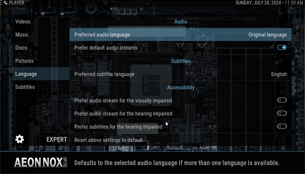 I would strongly suggest you use Kodi to play your videos. You can tell it to always use the default track original track or a specific language
