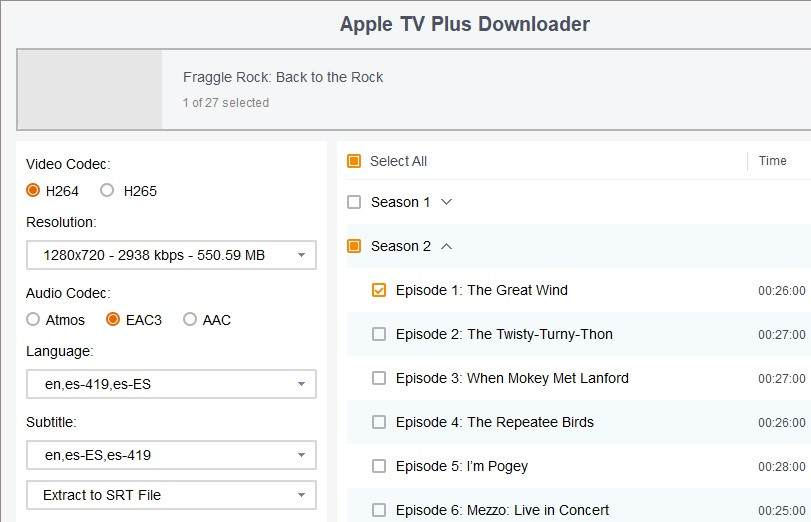 I tried to download Fraggle again (s02e01), and this time it downloaded it at the resolution indicated by @Germania and it seemed to be correct, but it was a very small file. When I play it, the audio is correct, but the video at second 41, it freezes and there is no video at any time. I demuxed it with several softwares and in all of them a file of only 41 seconds is generated.