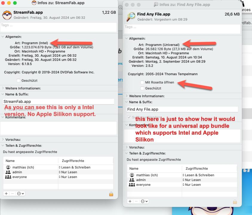 There used to be an "M1-Version". The last one I saw was named "streamfab_for_m1_6167.dmg" (dated May 2024), the filesize was 439MB. I assume they now made an "universal binary" installer for both, Intel and M1 (or M2?), because the latest installer for Mac (6.1.9.3) now counts 583MB.... (?)