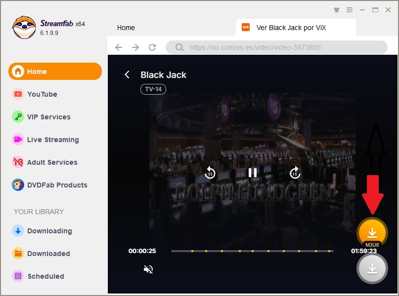 Your screenshot is from a MAC and not Windows. How did you decide that Vix.com uses m3u8 and not dash? When I just tried to download Blackjack by clicking the Download symbol, a brief popup (too fast to do a screenshot of) appears and says the website is not supported. You should have asked first before buying.