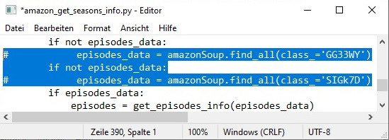 Would it not be much simpler to take the episode list from the template, check if there's a pagination token, if there is then request the additional (26+) episode list, add that episode list to the initial episode list we got in the initial template, and then parse the whole combined (much simpler) JSONised list of the episodes? And if there isn't a pagination token, you still just parse the JSONised episode list (because the size of the list doesn't really matter). That way you have a single single-pass JSONised episode list parser just with a D-tour if there's pagination, instead of having an HTML episode parser followed by a JSONised episode parser if there's pagination, i. e. you won't need get_episodes_info() at all, or make it just parse JSON instead?