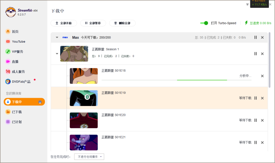 每集要分析十几分钟甚至几十分钟,三天前每集都在几秒钟内分析并下载