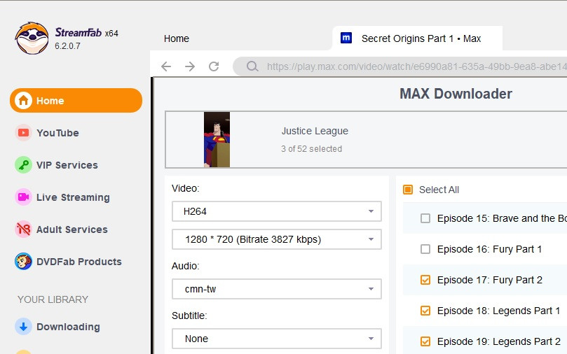 and was able to dl the three epis in less than 3 minutes (16:54-16:57) with vpn