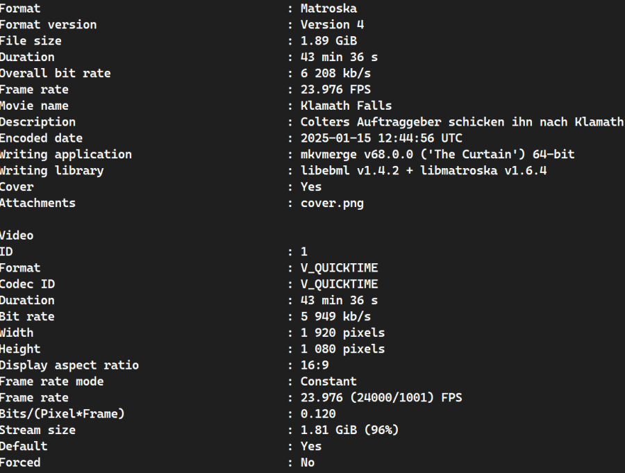 Tested with Tracker S01E01 and S0102 (from Switzerland), and I have tried MP4 and MKV(ffmpeg)-settings.