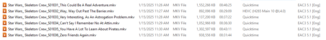 In the USA, Tracker is on Disney+ as "Hulu content". It does download as AVC/H264. It appears that only AVC/H264 is available, as my default is set for H265, yet H264 is auto selected, and changing to H265 still downloads as H264.