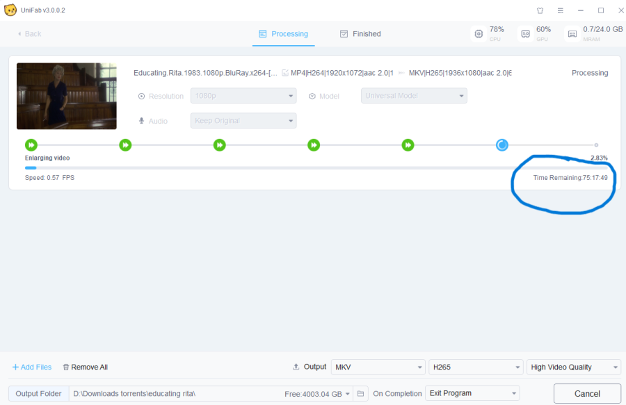 Chameleon This is my computer: 12th Gen Intel(R) Core(TM) i9-12900KF 3.20 GHz 64 bits - AMD Radeon RX 7900 XTX 24GB Saphire Pulse.I only have this issue as from version 2.0.3.8. Rolling back to V.2.0.3.7 I get the3 to 4 hours processing time. Perhaps am I the only one having this problem?josegDont work good with AMD GPUs, you need Nvidia at least 3000series.