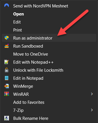 - Right-Click the file named sf_manage_mod.cmd and click Run as administrator