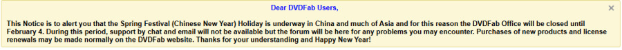 Reminder, most of the DVDfab staff is away until at least Feb 4th, now..