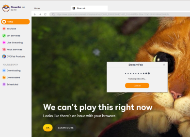 Here's what I actually had to do to get Peacock working for me. And yeah.... this is beyond odd. So, even with 6.2.2.0, when I first opened SF, and called for "Peacock" from the VIP menu, any attempts to get to content gave me that cute kitty "we can't play this right now" redirect. When I see that, I know SF wont' complete Analysis. Tried it multiple times. Then I exited, cleared all cache, temps, appdata, logs. Then, went back in, but instead of clicking on Peacock from the VIP menu, I typed in peacock.com in SF's url bar. That brought up same, correct Peacock, but... SF doesn't recognize site as official Peacock that way. So, I get no analysis. Best I get is a lower right "MPD" clickable icon (though technically, clicking on MPD icon doesn't actually work).