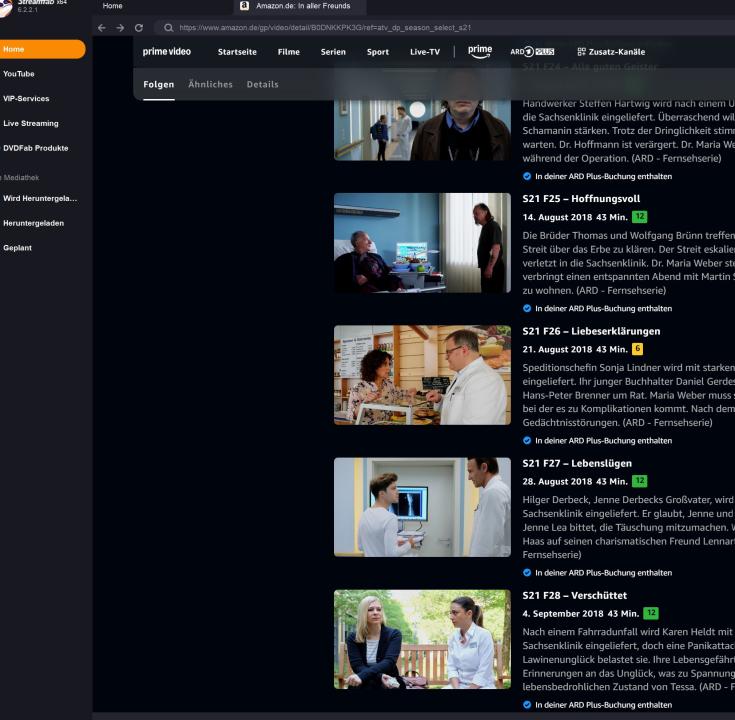 Sebastian001 Are you saying that the thumbnail StreamFab uses is not the one that is on Amazon.de?I have seen many times where the thumbnails are generic and it's ALL episodes...Not just 26+jpp72Yes, everything is normal on the Amazon website. All episodes have the same formatting, both file names and photos.
