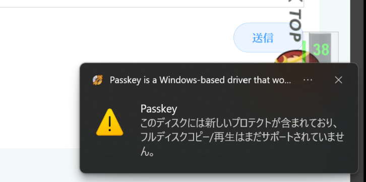 ryo_hei_1110 Passkeyこのディスクには新しいプロテクトが含まれており、フルディスクコピー/再生はまだサポートされてません。もう去年の12月からずっとこの状態です。早急に対応お願いいたします。