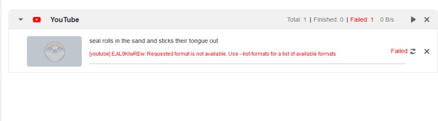 MorrisLessmore When trying to add a video to download from youtube, it gives me only audio as a choice of format: Then when I try downloading like this, the download fails:Any ideas? Was there an update on youtube?