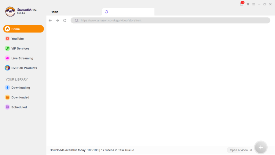 When I open Streamfab, currently the latest version, if I then click on Home and then say Amazon, a new tab opens but nothing is loaded in it. It just spins around for ever, and very rarely does it load the actual Amazon Prime website.