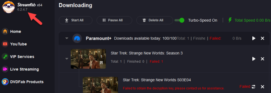 Also came here to report this. 6.2.4.7 Same error on ST: Strange New Worlds S03E04. Identical to user KurtH3 above.