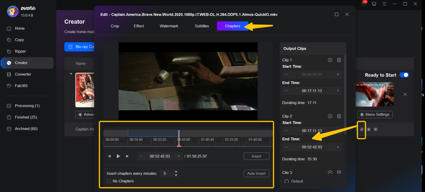 About the chapter feature, it is in the Edit window. Please refer to the image attached.