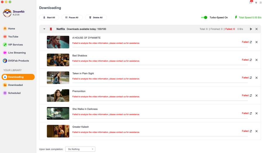 gsargent51 I have started getting issues with attempting to download anything on Netflix. This issue has started in the past week or so. I am getting "Failed to analyze the video Information. Please contact us for assistance. Attached is a copy of the screenshot of the download file. Is anyone else having this issue. I have reported it to StreamFab support.