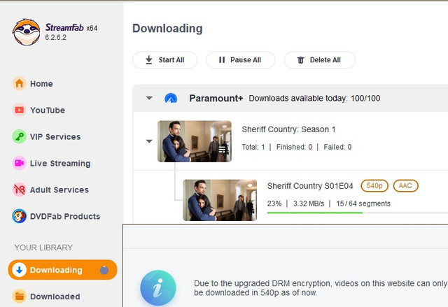 I’ve recently noticed that some TV shows and movies are only available in 540p, even though StreamFab shows multiple 720p and 1080p versions available. However, during download, StreamFab displays a message stating that the TV show or movie is only available in 540p. This happens on various platform services (Amazon, Disney+, Hulu, Netflix, Paramount+, Peacock).