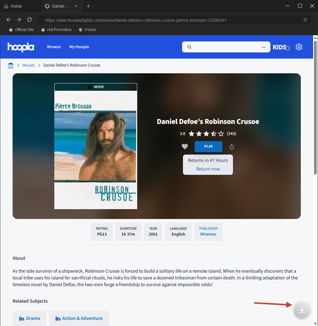 I also tried in SF using the URL for the Hoopla home page, going to My Hoopla, then opening the info page for the movie.