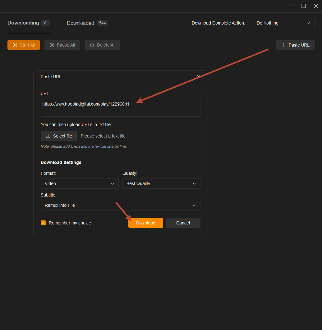 I also tried from the Downloads page (via the PASTE URL button) but nothing happens - no message, no change to the queue.