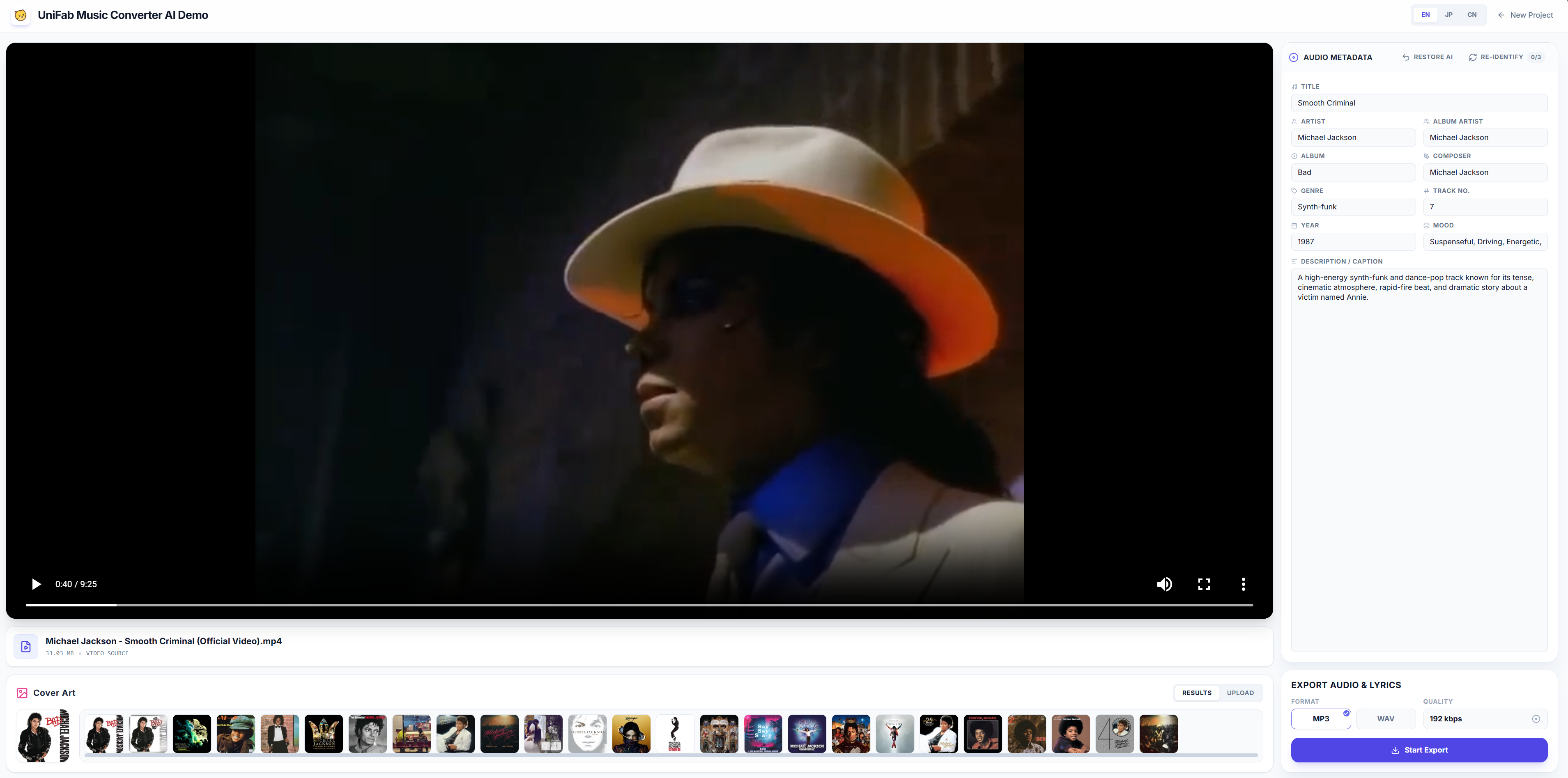 We are currently developing an innovative Music Converter AI that can convert music videos into audio files