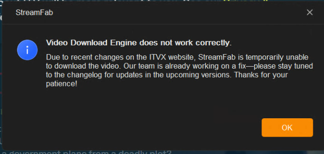 I went to download the latest episode of Grantchester from ITVX and received this pop-up…