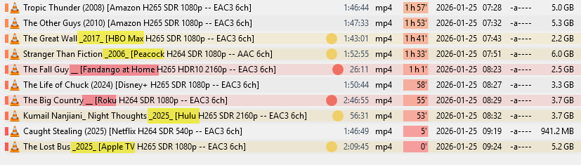 2 didn’t output the year at all and replaced () with underscores: Fandango at Home, Roku