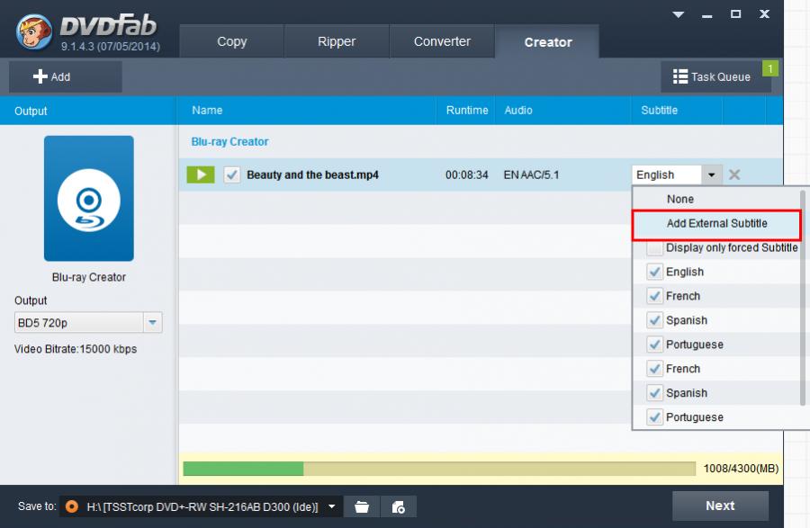 If we want to create our personal Blu Ray disc we have the option to ADD external subtitles to the video files.