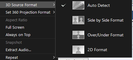 The 3D support you have in your current version only supports 3D similar to theater 3D. However, we also need 3D Side by Side and Over/Under support. Please provide. I would like to use this program instead of PowerDVD, which offers this support now. See attached snapshot.