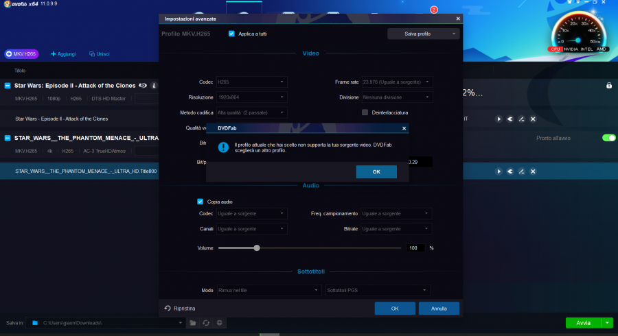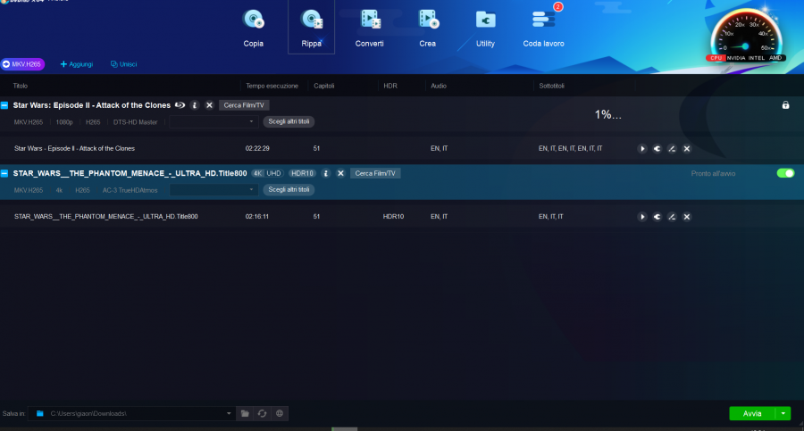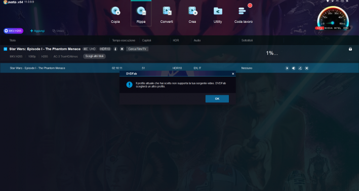 I tried to rip a uhd using mkv.hevc 8 bit and mkv.hevc 10 bits, initially it doesn't work but then it allows you to move on and eventually with both you can go further. I can ask, is there any way to remove this impediment because the program says it is incompatible? and this is what I get with mkv.hevc 8 bits even if the program tells me that it is incompatible but still I can get it in sdr with BT709, which with hdr10 to sdr does not work and the appearance and the same of full bluray and not with all as I noticed and seen for the last chapter of the saga of star wars that has problems in colors , which with mkv.hevc 8 bits does not happen
