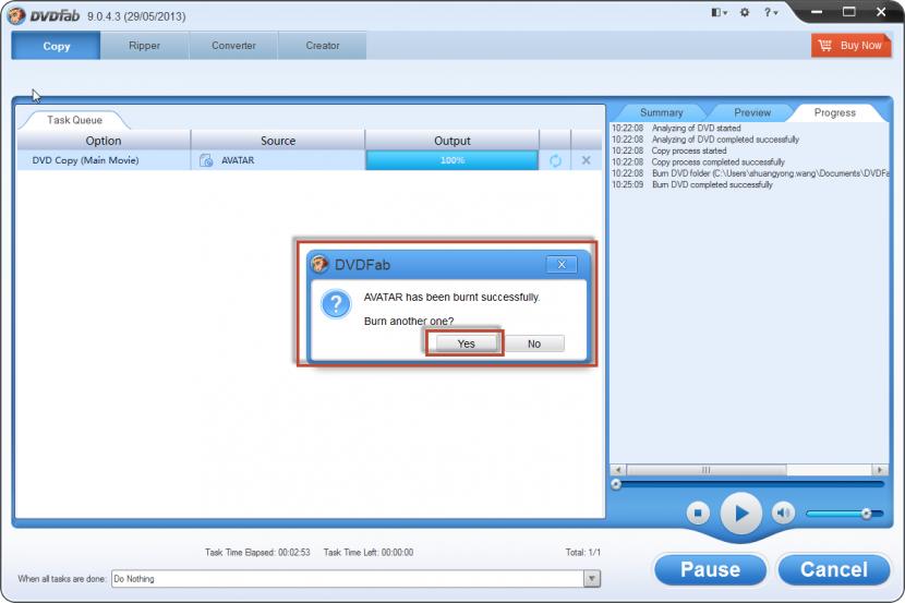 In the off chance that any DVDFab developer sees this post then another useful DVDFab modification would be to provide an indication of the DVD burner drive (or drives) that have been selected for this copy process. While the copy is proceeding. I use multiple concurrent instances of DVDFab with multiple burners and knowing which instance of DVDFab is using which burner at all times would be handy.