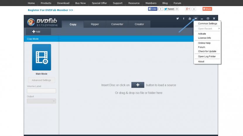 You need to go to common settings as shown in the left slide. In common settings, as shown on the right slide, select the "Drives" tab and then for DVD Write or Blu-ray write, select your burning engine.