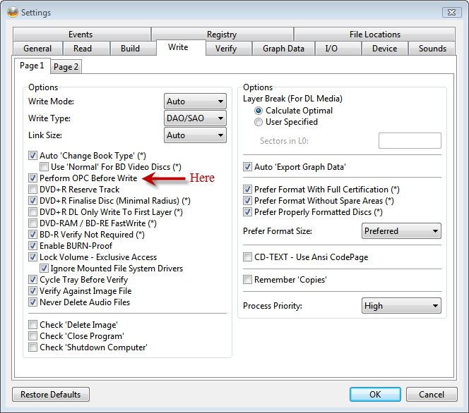 If using ImgBurn click settings> write> check the box perform OPC before write, see pic.