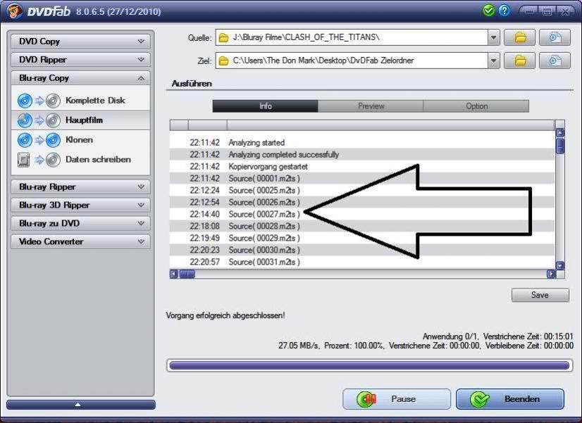Bei Quelle öffnet sich ein Fenster siehe Screenshot, wen der Film schon auf der platte liegt, oder eine iso.In diesem Fall liegt der Film da (der mit den Fuchs tanzt )