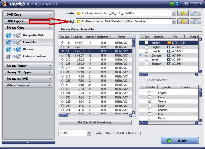Wir starten Fab.Und lesen die BD ein oder die mit den Fuchs erstellte iso oder den ordner ,siehe Pfeile
