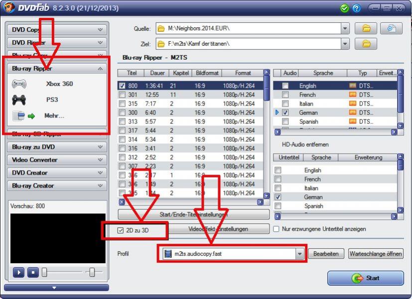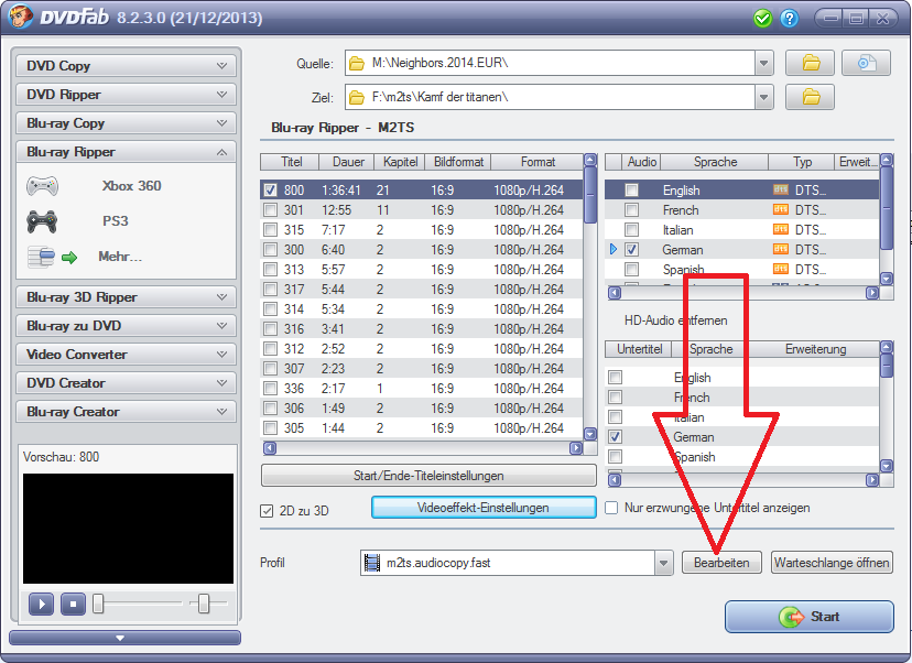 Etwas muss ich noch hinzufügen,Da Fab seine Probleme mit den Untertiteln hat würde ich es lieber so machen wie auf der Anleitung steht wenn Untertiteln vorhanden sind