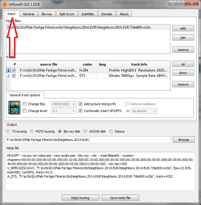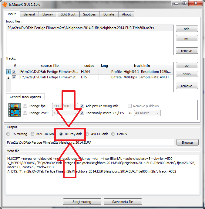 gepostet Vorsicht nicht die Version tsMuxeR 2.6.12 nehmen sonst klappt das nicht habe es selber getestet.Ihr braucht diese Version tsMuxeR_1.10.6