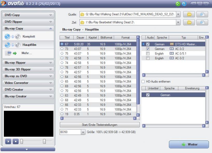 Es gibt auch eine 2 Variante mit den Blu-ray Ripper das werden wir auch mal machen um zu sehen wie die Qualität ist.Aber erst machen wir das mit den Blu-ray Copy ich mache dir eine genaue Anleitung mit Screenshot