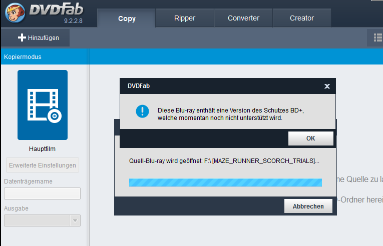 Auf der BD ist wieder BD+ Schutz vorhanden, wird noch nicht unterstützt.