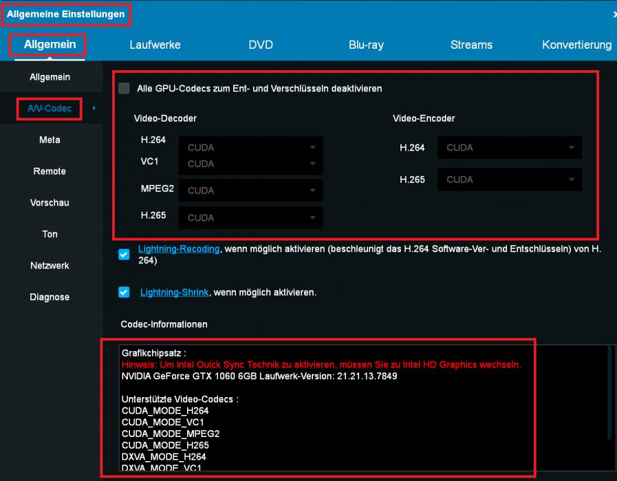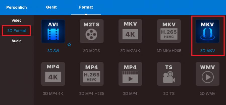 Sprich Allgemeine Einstellungen, Bitrate, 3d Format SBS 50% oder Full 100% usw.