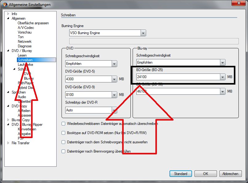 Wenn ihr mal eine BD schrumpfen solltet dann stehlt 24100 GB ein ( Siehe Screenshot )