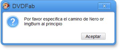 Gracias muy amable por la respuesta. Es que tengo el DVDFab 9.0.4.5 y cuando voy a copiar un dvd me dice que tengo que selecionar el motor de grabación de Nero o el de ImgBurn. Yo selecciono el motor de grabación de DVDFab y me sale siempre la siguiente ventana: