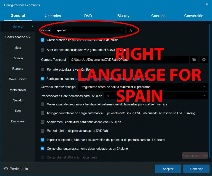 Corrijan para que en un pc Spanish-->DvdFab Spanish.