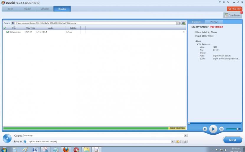 I have tried to use Creator on DVDFab 9.0.5.0, burning to a 25GB BD-R disk, and the resulting video and audio result is perfect, except that there is no subtitle which I need ( I am hearing impaired).