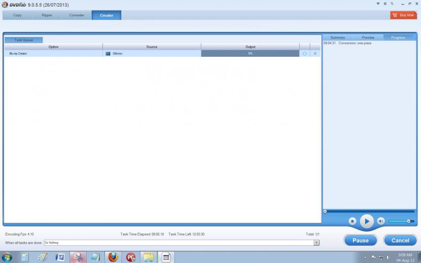 I found the Creator mode now doesn't work at all. Output is shown at zero percent all the time, and the Task Time Left just keeps increasing - it is now up to 10 hours after 5 minutes running
