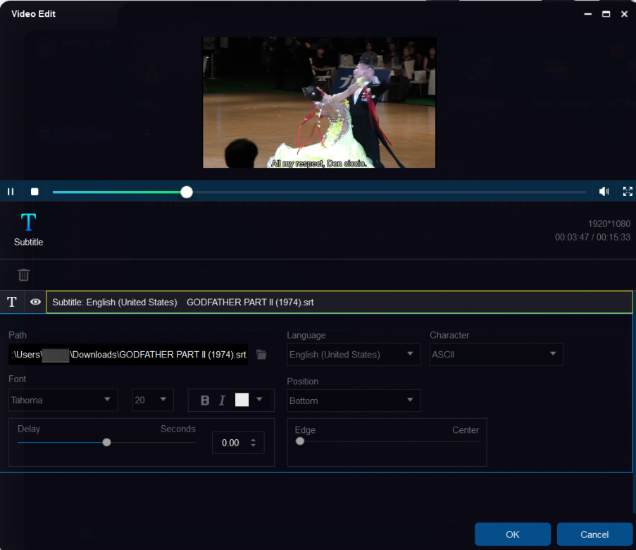 But after you add the external subtitle, a video edit window should popup like the one I enclosed.