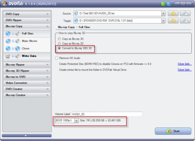 Can you reduce a full 3d 50 gig fab made backup disk to 3d side by side 25 gigs. My original 3d disk got broken so all i have is the 50 gig backup disk.If so what are the steps thanks?