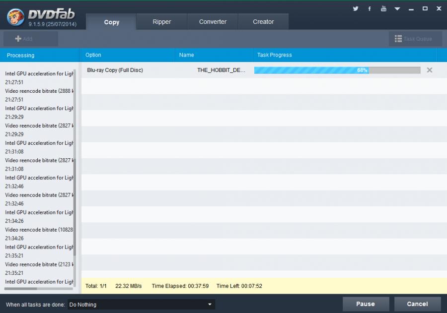 DVDFab Bku-ray horribly slow (50 to 25)