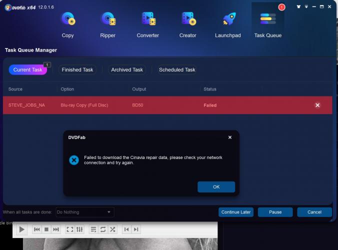 So I have 3 DVD drives and 1 BluRay Drives. I always load all my DVDs and Bluray and queue them up and then I push start. Recently I started experiencing DVDFab canceling certain task from certain drives. I tried removing all the drives and rebooting but DVDFAB will cancel 2 out 4 tasks every time I use it now. This is so frustrating....