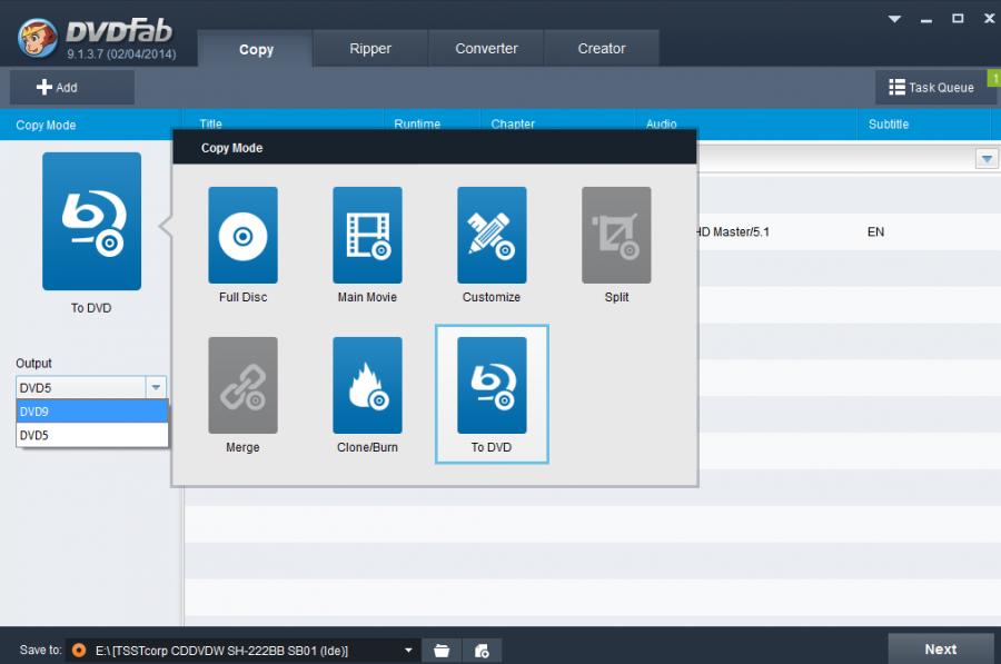 and when I chose copy there no out put option for dvd just for BD50 and BD25