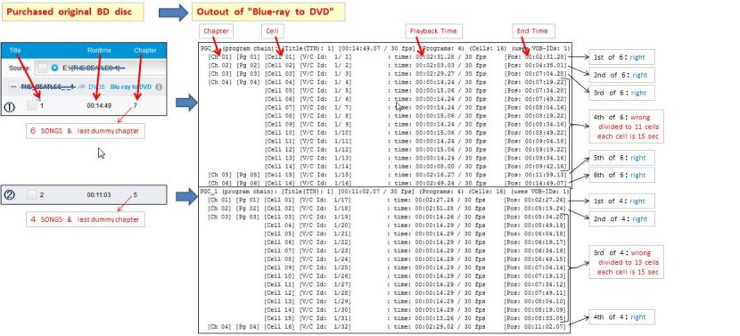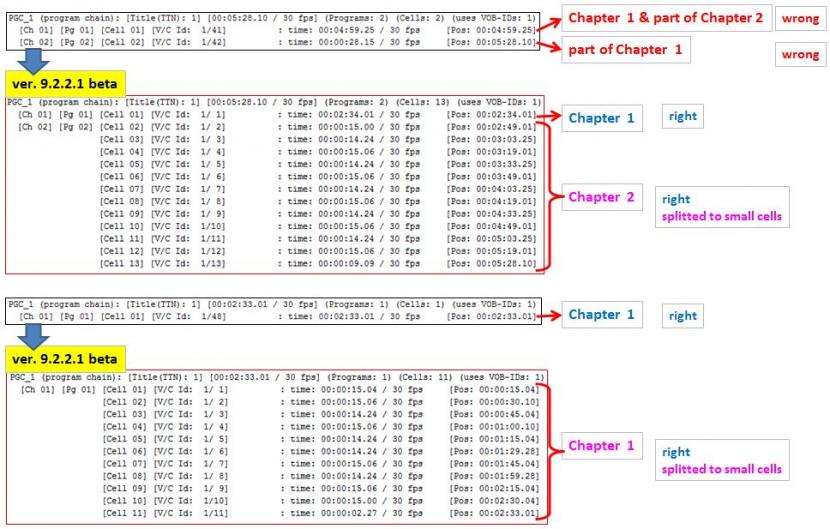 (3) when title is over 10 min : it seems to divide certain cell to many cells of 15 sec. (This divided cell is seemed to existing in between 5 min to 10 min.) It would be no actual problem for replaying, because chapter points don't change.